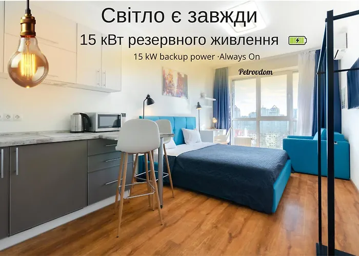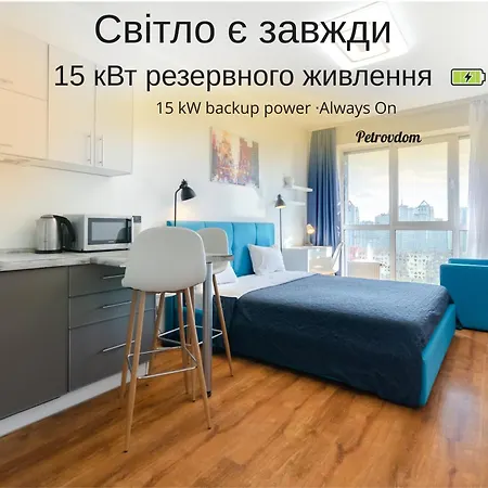 Ввв! 20-199B Kvartet, Vasyl Lypkivskyi 16G, Kyiv, Railway Station, Metro Nearby, Panoramic City View, 15 Kw Backup Power, Petrovdom Apartment располагают удобствами для самостоятельного приготовления пищи, включая оснащённую всем необходимым кухню с электрочайником, кухонной утварью и стеклянной посудой. Аэропорт Киев им. И. И. Сикорского расположен в 5 км, а автобусная остановка Skybus — в 5 минутах неспешного шага от апартаментов.